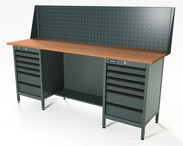 Верстак серии Standart, 2000 мм, фанера, тумба с 6-ю ящиками + тумба с 6-ю ящиками, экран 500, серый RAL 7016