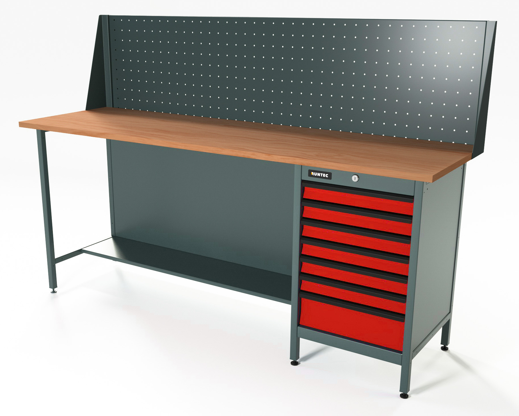 Верстак серии Standart, 2000 мм, фанера, тумба с 7-ю ящиками, экран 500, красный RAL 3020