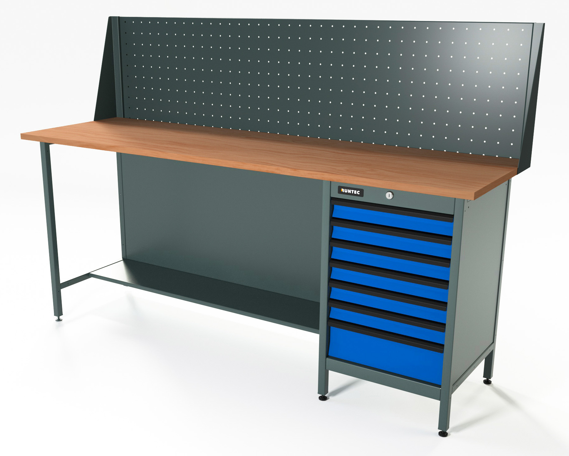 Верстак серии Standart, 2000 мм, фанера, тумба с 7-ю ящиками, экран 500, синий RAL 5005