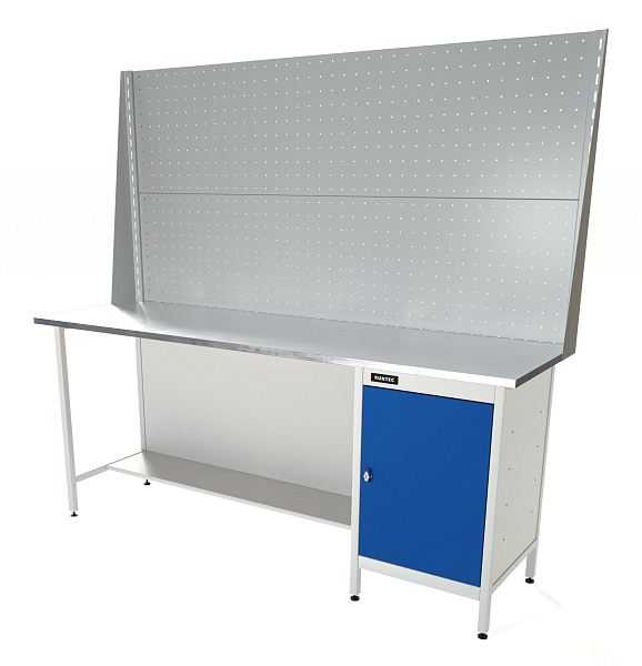 Верстак серии Standart, 2000 мм, оцинк, тумба с дверью, экран 1000, синий (светло-серый) RAL 5005 (7035), RUNTEC, RTS20Z-TS0-NS-P20-P20-5005(7035)