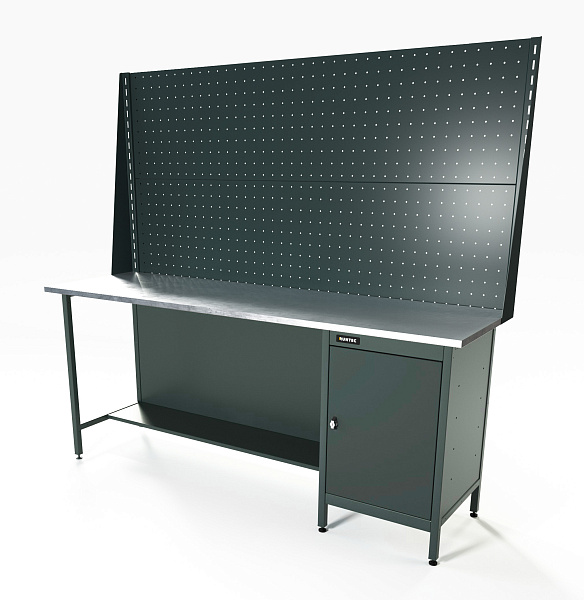Верстак серии Standart, 2000 мм, оцинк, тумба с дверью, экран 1000, серый RAL 7016