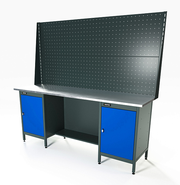 Верстак серии Standart, 2000 мм, оцинк, тумба с дверью + тумба с дверью, экран 1000, синий RAL 5005