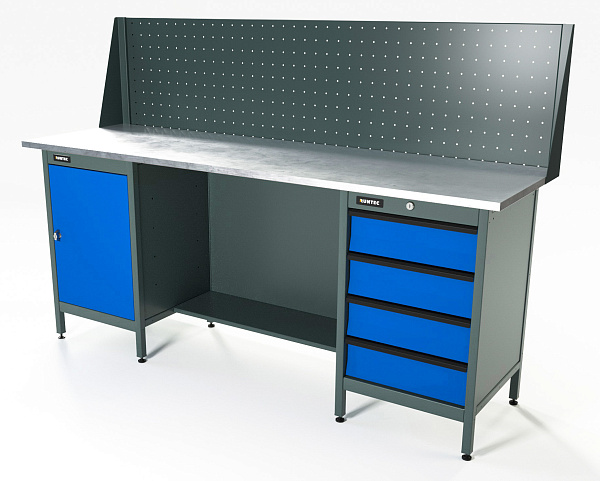 Верстак серии Standart, 2000 мм, оцинк, тумба с дверью + тумба с 4-мя ящиками, экран 500, синий RAL 5005