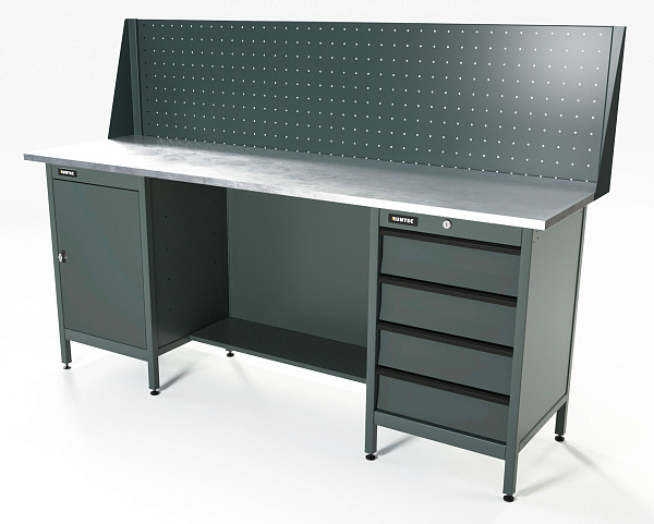 Верстак серии Standart, 2000 мм, оцинк, тумба с дверью + тумба с 4-мя ящиками, экран 500, серый RAL 7016, RUNTEC, RTS20Z-TS0-TS4-P20-7016