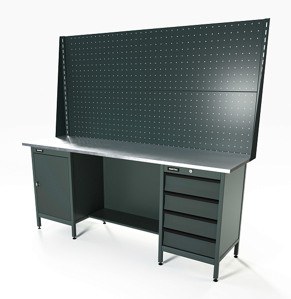 Верстак серии Standart, 2000 мм, оцинк, тумба с дверью + тумба с 4-мя ящиками, экран 1000, серый RAL 7016