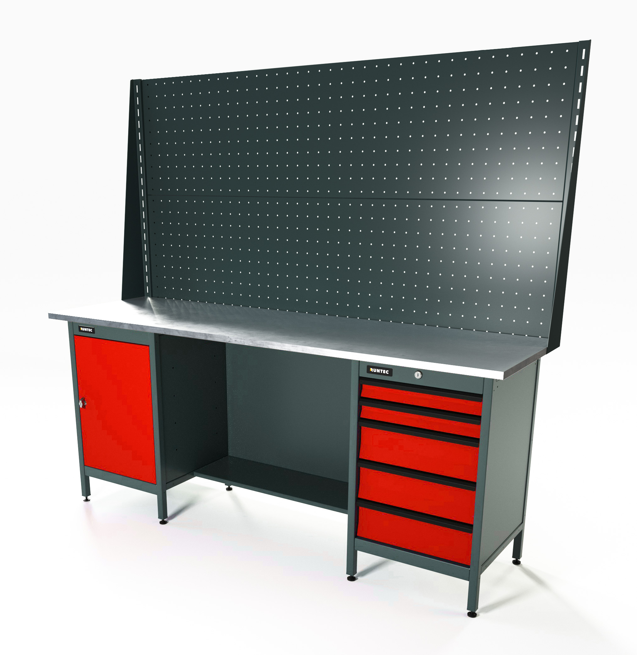Верстак серии Standart, 2000 мм, оцинк, тумба с дверью + тумба с 5-ю ящиками, экран 1000, красный RAL 3020
