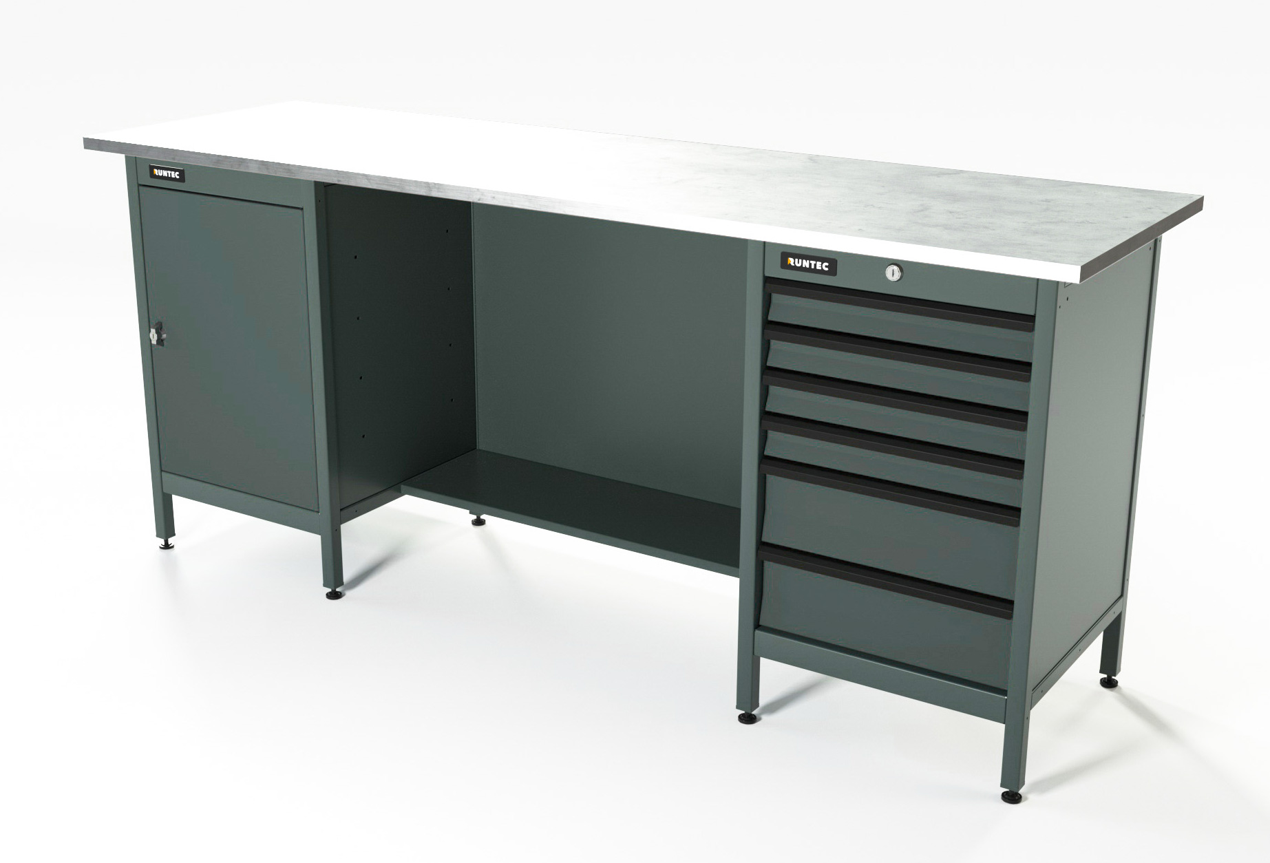 Верстак серии Standart, 2000 мм, оцинк, тумба с дверью + тумба с 6-ю ящиками, серый RAL 7016