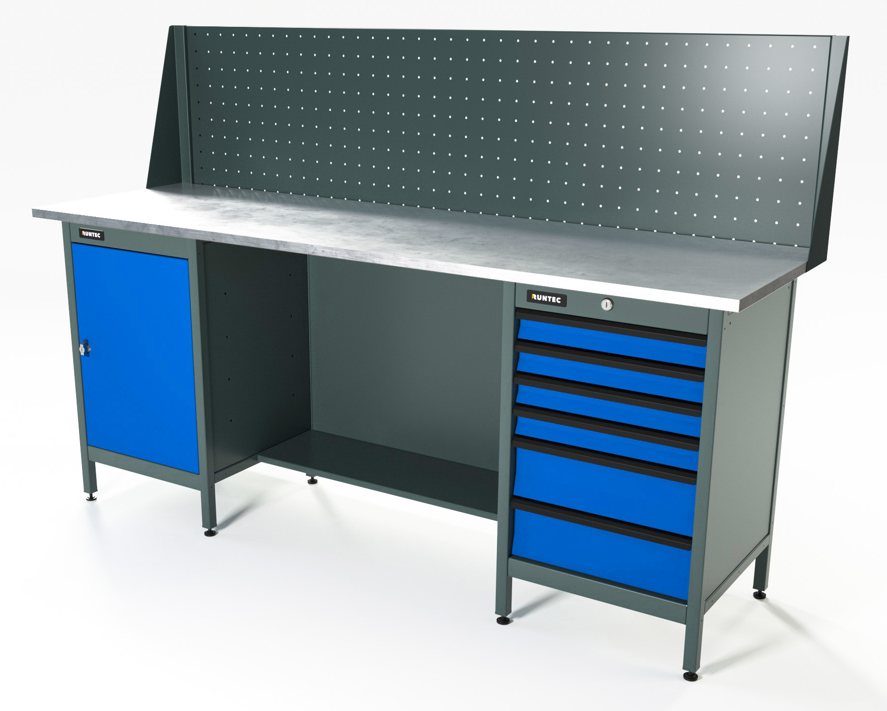 Верстак серии Standart, 2000 мм, оцинк, тумба с дверью + тумба с 6-ю ящиками, экран 500, синий RAL 5005