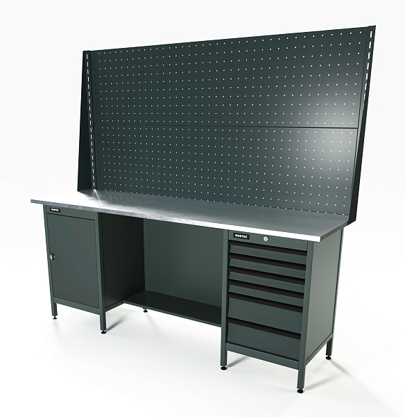 Верстак серии Standart, 2000 мм, оцинк, тумба с дверью + тумба с 6-ю ящиками, экран 1000, серый RAL 7016