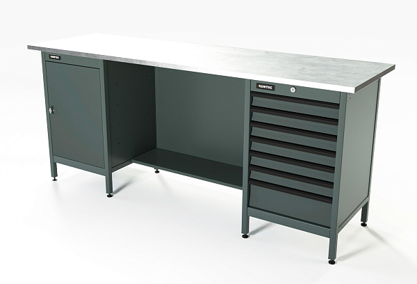 Верстак серии Standart, 2000 мм, оцинк, тумба с дверью + тумба с 7-ю ящиками, серый RAL 7016
