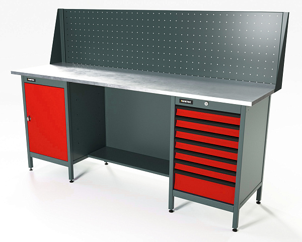 Верстак серии Standart, 2000 мм, оцинк, тумба с дверью + тумба с 7-ю ящиками, экран 500, красный RAL 3020