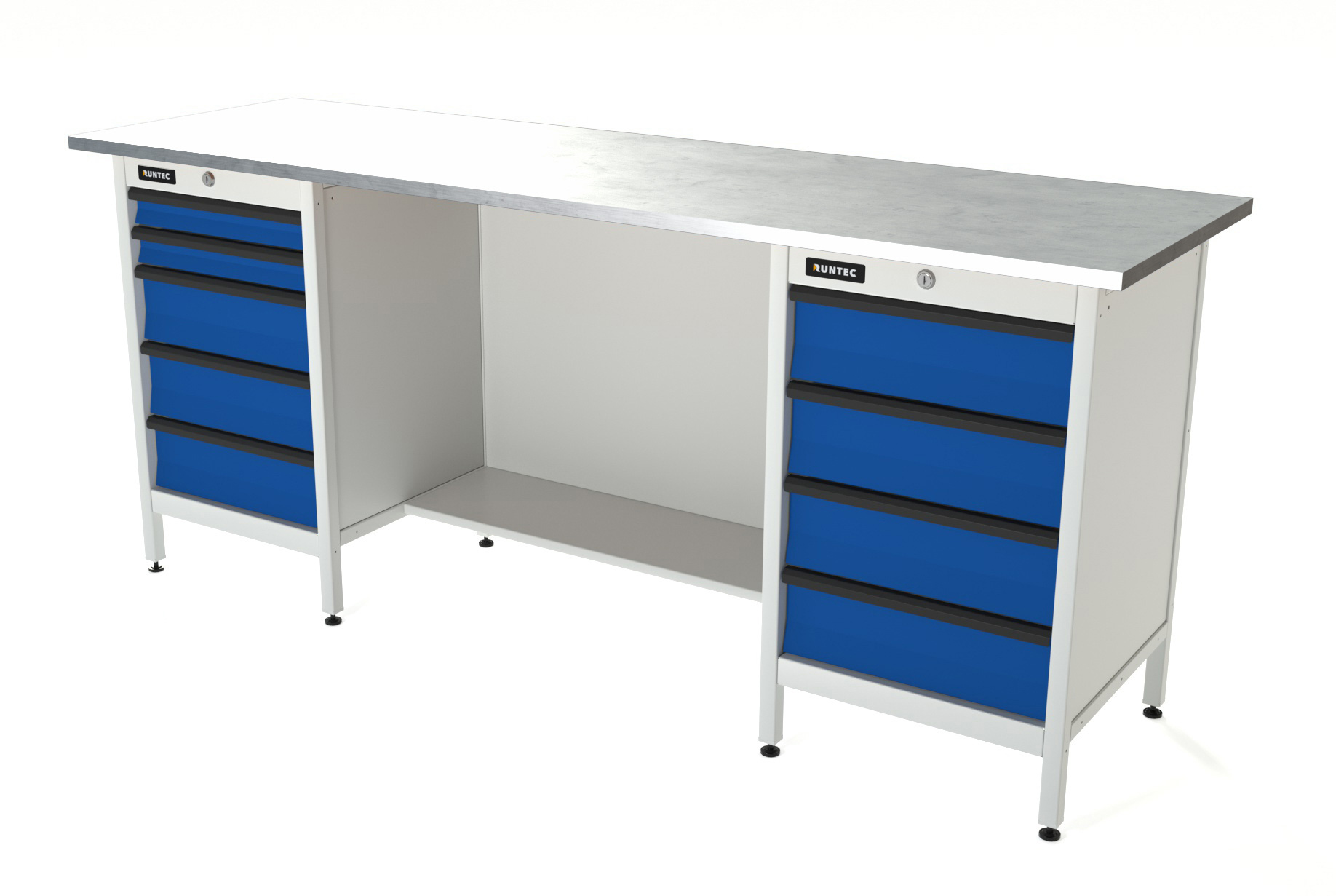 Верстак серии Standart, 2000 мм, оцинк, тумба с 4-мя ящиками + тумба с 5-ю ящиками, синий (светло-серый) RAL 5005 (7035)