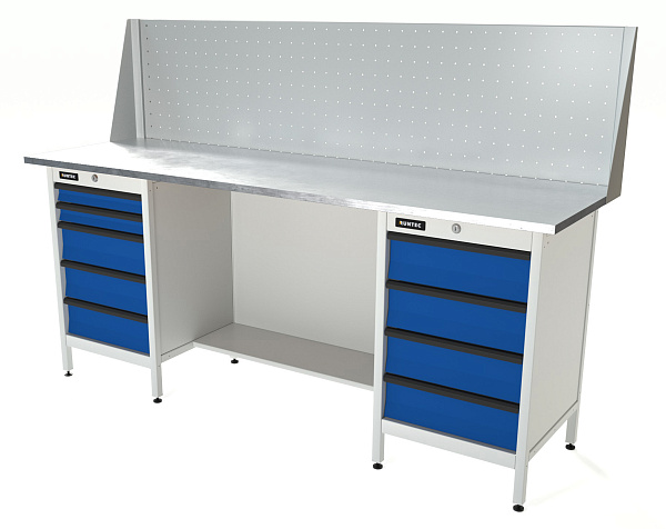 Верстак серии Standart, 2000 мм, оцинк, тумба с 4-мя ящиками + тумба с 5-ю ящиками, экран 500, синий (светло-серый) RAL