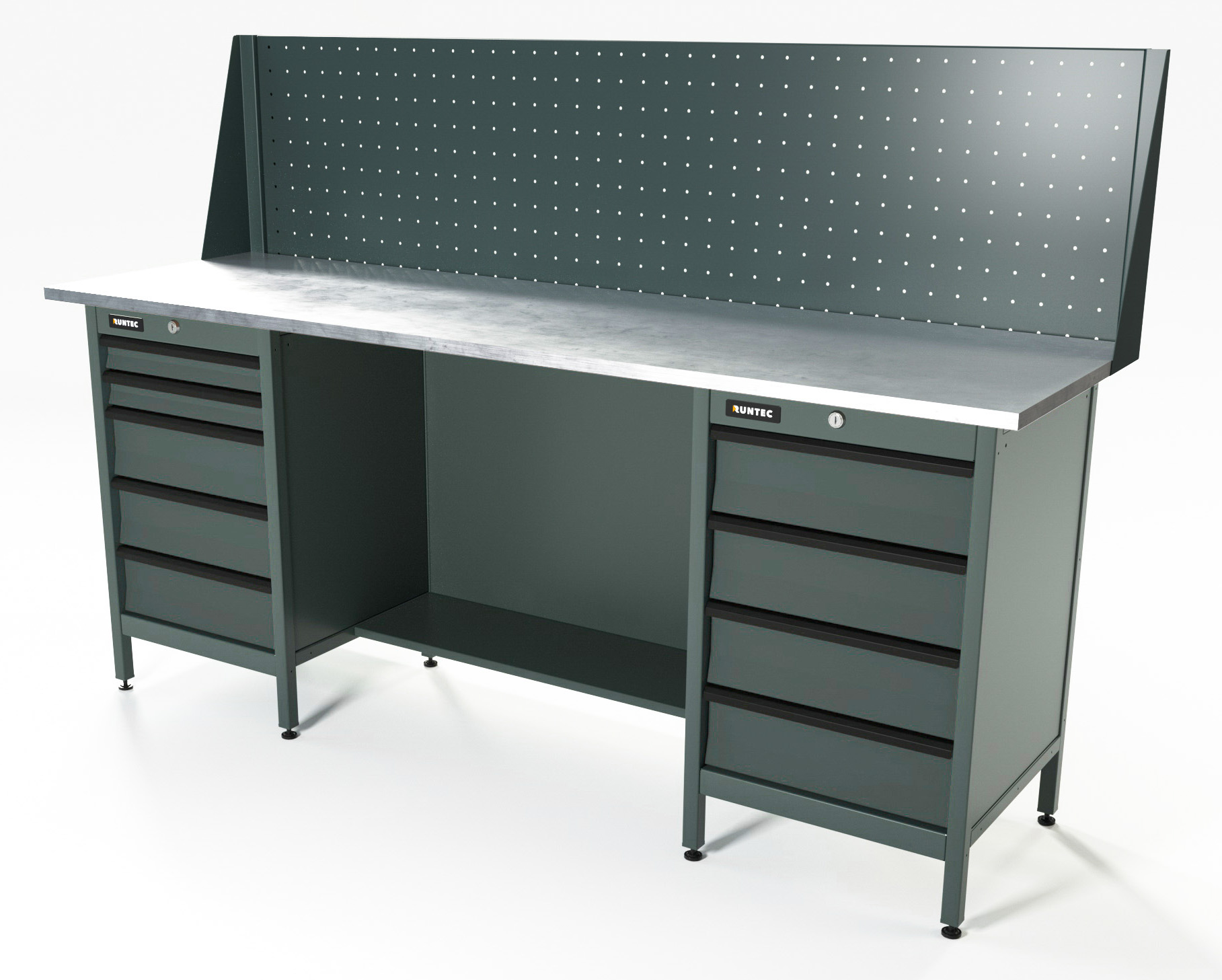 Верстак серии Standart, 2000 мм, оцинк, тумба с 4-мя ящиками + тумба с 5-ю ящиками, экран 500, серый RAL 7016