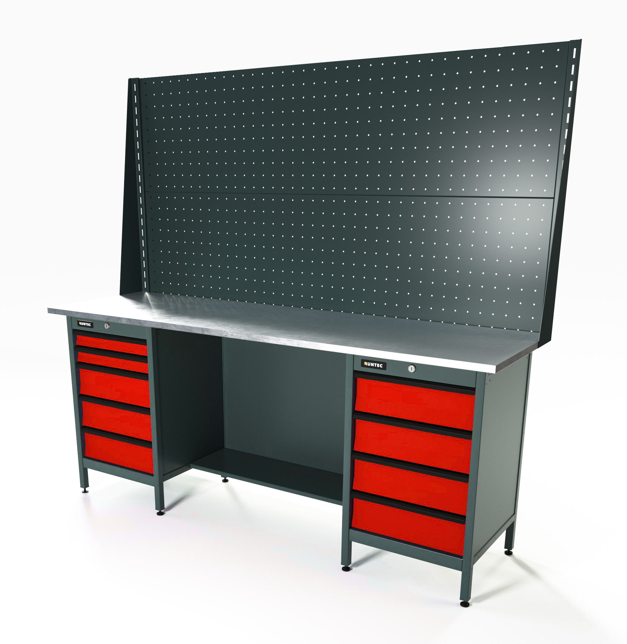 Верстак серии Standart, 2000 мм, оцинк, тумба с 4-мя ящиками + тумба с 5-ю ящиками, экран 1000, красный RAL 3020