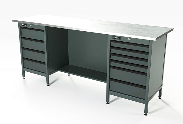 Верстак серии Standart, 2000 мм, оцинк, тумба с 4-мя ящиками + тумба с 6-ю ящиками, серый RAL 7016