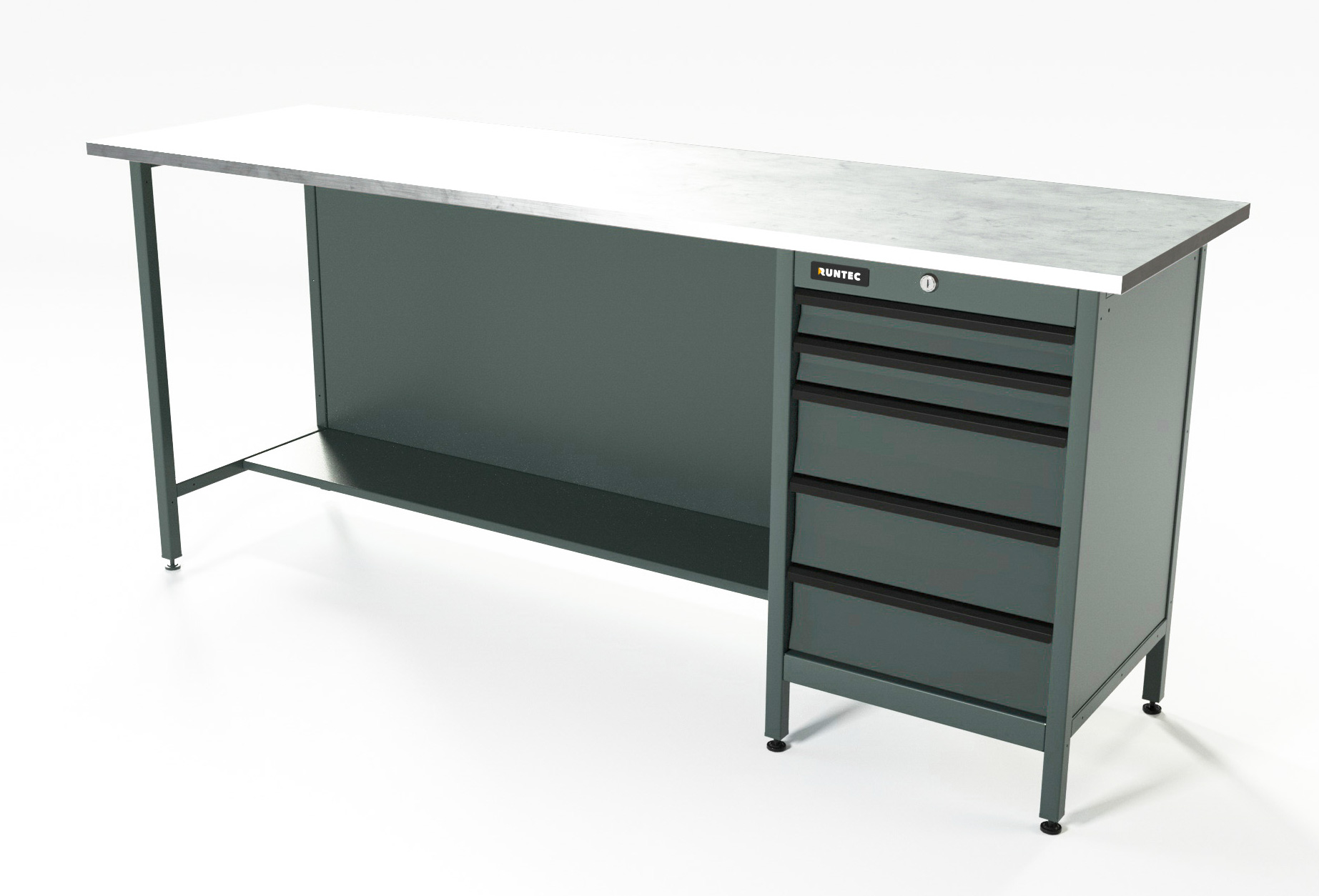 Верстак серии Standart, 2000 мм, оцинк, тумба с 5-ю ящиками, серый RAL 7016
