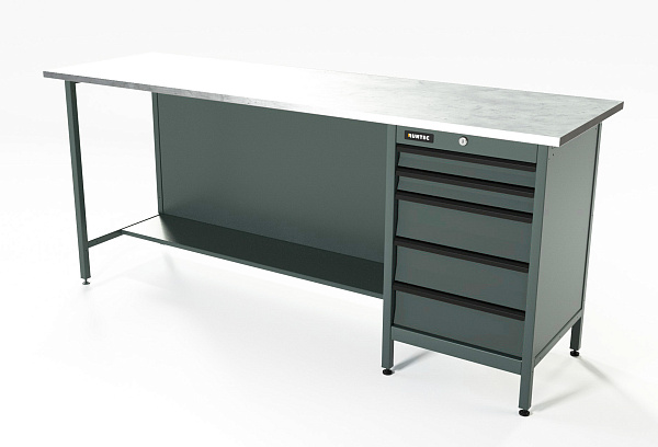 Верстак серии Standart, 2000 мм, оцинк, тумба с 5-ю ящиками, серый RAL 7016, RUNTEC, RTS20Z-TS5-NS-7016
