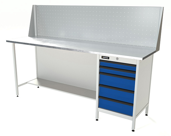 Верстак серии Standart, 2000 мм, оцинк, тумба с 5-ю ящиками, экран 500, синий (светло-серый) RAL 5005 (7035), RUNTEC, RTS20Z-TS5-NS-P20-5005(7035)