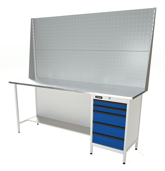 Верстак серии Standart, 2000 мм, оцинк, тумба с 5-ю ящиками, экран 1000, синий (светло-серый) RAL 5005 (7035), RUNTEC, RTS20Z-TS5-NS-P20-P20-5005(7035)