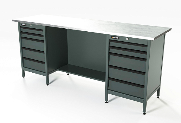 Верстак серии Standart, 2000 мм, оцинк, тумба с 5-ю ящиками + тумба с 5-ю ящиками, серый RAL 7016
