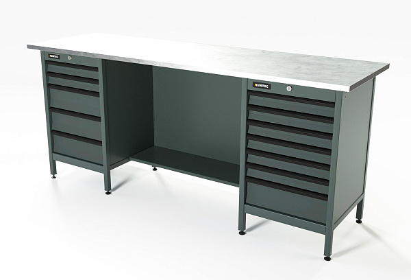 Верстак серии Standart, 2000 мм, оцинк, тумба с 5-ю ящиками + тумба с 7-ю ящиками, серый RAL 7016