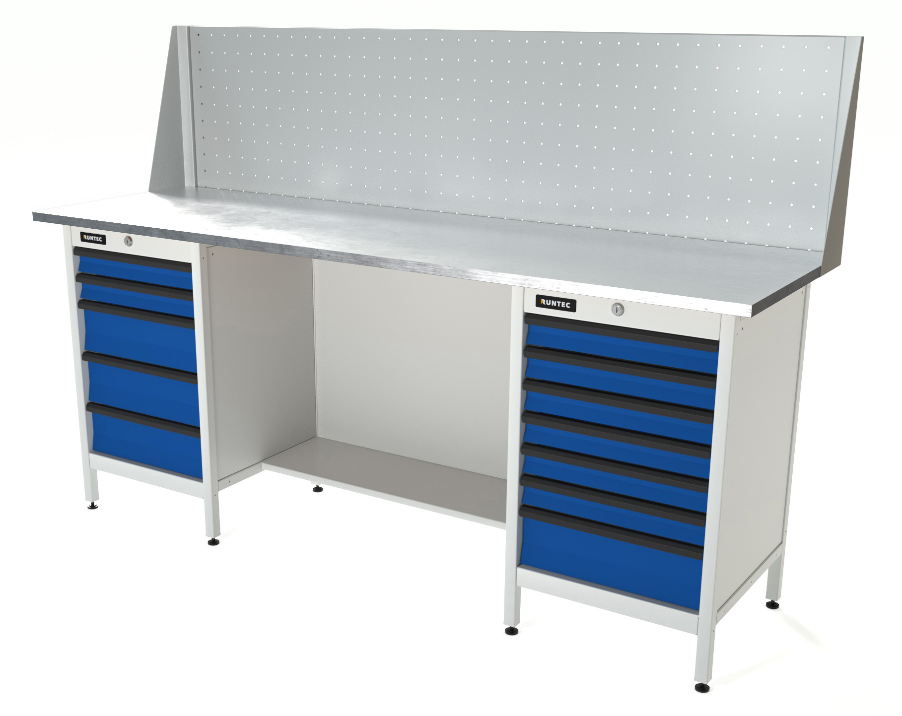 Верстак серии Standart, 2000 мм, оцинк, тумба с 5-ю ящиками + тумба с 7-ю ящиками, экран 500, синий (светло-серый) RAL 5
