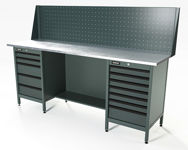 Верстак серии Standart, 2000 мм, оцинк, тумба с 5-ю ящиками + тумба с 7-ю ящиками, экран 500, серый RAL 7016