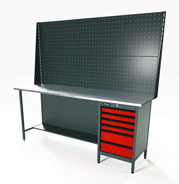 Верстак серии Standart, 2000 мм, оцинк, тумба с 6-ю ящиками, экран 1000, красный RAL 3020