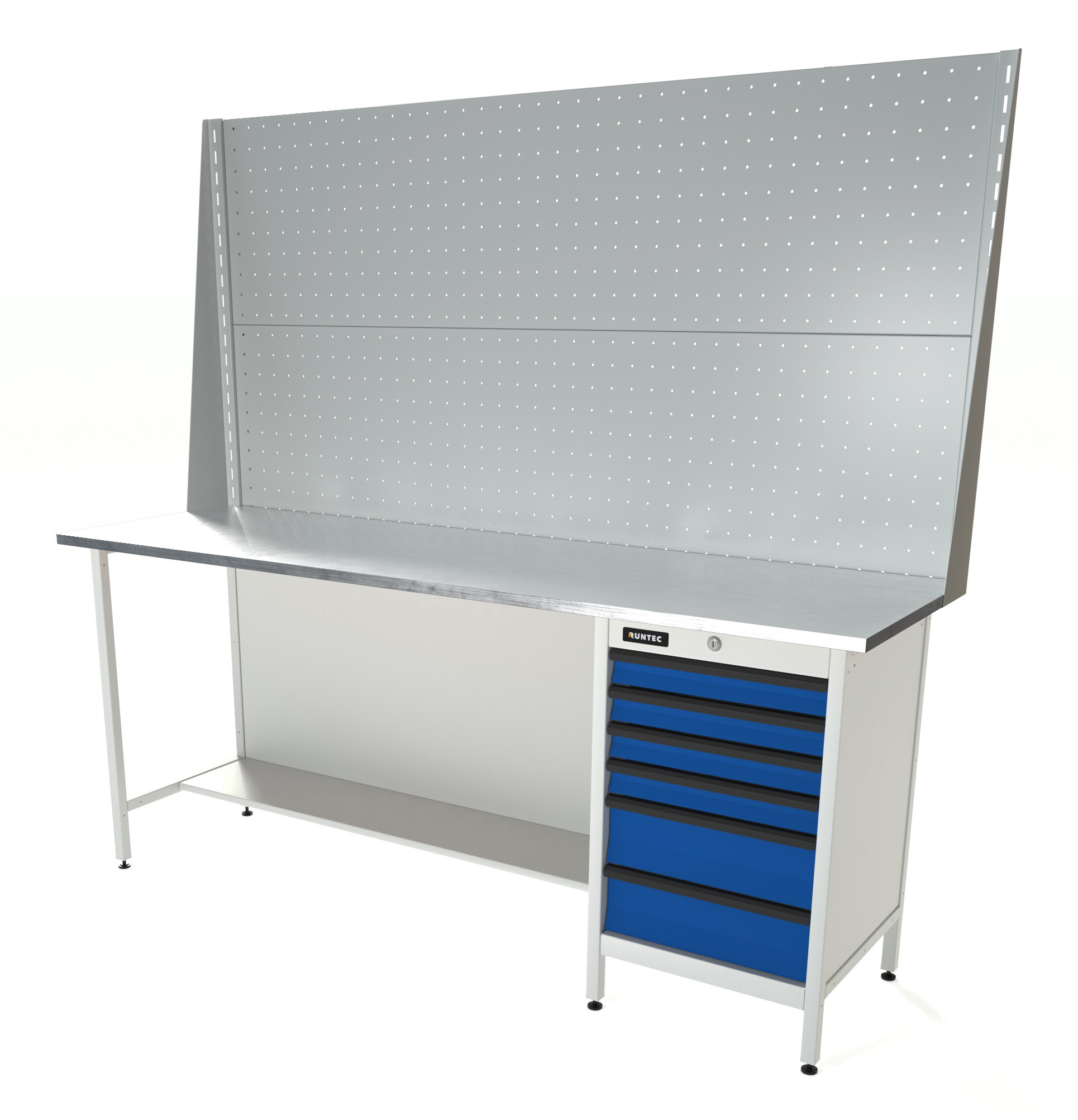 Верстак серии Standart, 2000 мм, оцинк, тумба с 6-ю ящиками, экран 1000, синий (светло-серый) RAL 5005 (7035)