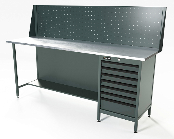 Верстак серии Standart, 2000 мм, оцинк, тумба с 7-ю ящиками, экран 500, серый RAL 7016