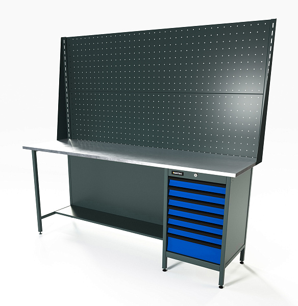 Верстак серии Standart, 2000 мм, оцинк, тумба с 7-ю ящиками, экран 1000, синий RAL 5005, RUNTEC, RTS20Z-TS7-NS-P20-P20-5005