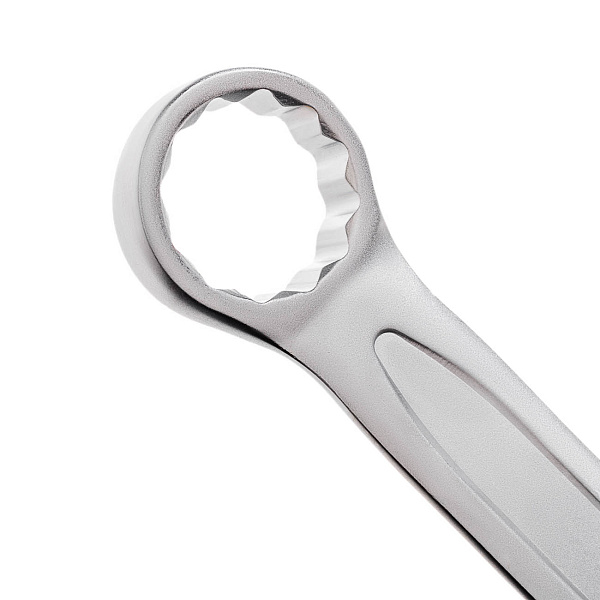 Смещение рожкового и накидного профилей ключа повышает эффективность работы в местах с ограниченным доступом и на плоских поверхностях.