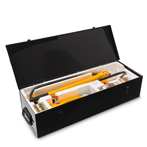 Комплект из 18 предметов поставляется в двух прочных металлических кейсах, обеспечивающих удобство хранения и транспортировки. Растяжка идеально подходит для выравнивания деталей и исправления деформаций кузова в автосервисах и ремонтных мастерских.