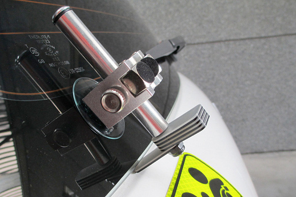 Инструмент оснащён магнитами для фиксации на кузове автомобиля и специальными присосками для крепления на стёклах.