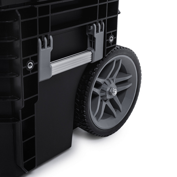 Ящики изготовлены из прочного ABS-пластика с матовым покрытием, устойчивым к царапинам и загрязнениям. Герметичная водонепроницаемая конструкция имеет степень защиты IPX6. Нижний ящик оснащен колесами и телескопической ручкой, что позволяет легко перевозить систему.