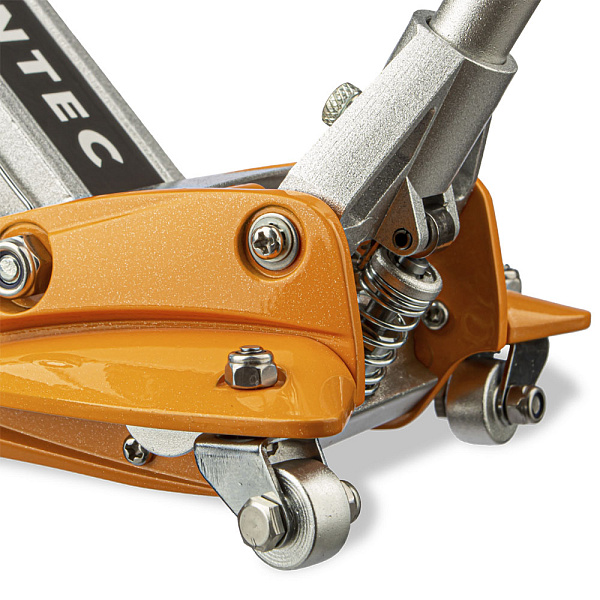 Полнстью функциональный макет домкрата с поворотными колесами размером 20х5 см способен поднимать груз массой до 100 кг.