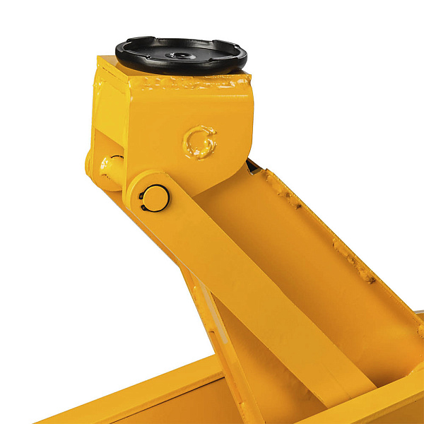 Удлиненная конструкция базы облегчает доступ к месту подхвата. Домкрат оснащен педалью для быстрого подвода опорной площадки к кузову автомобиля. Карданный механизм привода запорного клапана обеспечивает плавное опускание автомобиля. На случай выхода из строя насоса, в стандартной комплектации есть ремкомплект.