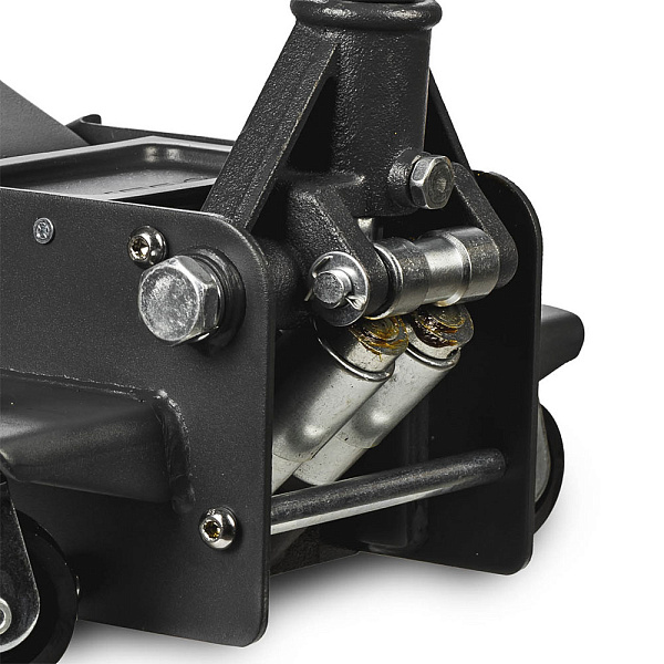 Домкрат оснащен двухпоршневым насосом — самым надёжным и современным приводом гидравлического насоса. Его конструкция позволяет быстро и легко поднять автомобиль. Усиленная конструкция базы и карданная передача усилия запорного клапана позволяют использовать домкрат с более высокой нагрузкой. Корпус выполнен с использованием высокоточной роботизированной сварки.