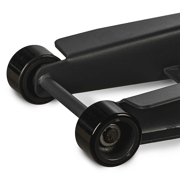 Прорезиненная рукоятка не скользит в руках, обеспечивая надежный захват. Кроме того, она поможет избежать повреждений при случайном открытии двери автомобиля. Предусмотрена ниша для хранения крепежа. Малая высота подхвата дает возможность подъема автомобилей с низким клиренсом. Поворотные колеса облегчают перевозку домкрата. Резиновый упор подъемной лапы повышает безопасность в процессе эксплуатации домкрата.