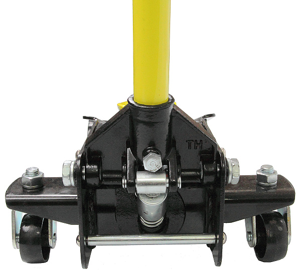 Металлическая конструкция колес обеспечивает легкость перемещения домкрата.