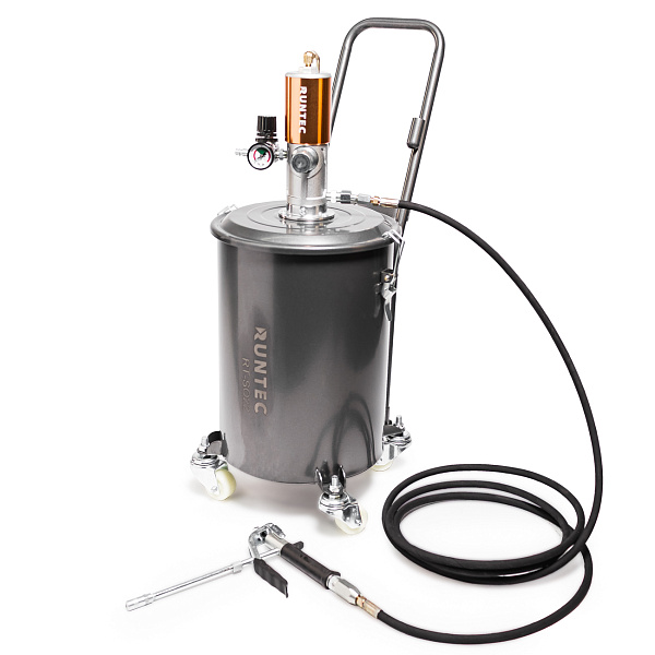 Подходит для консистентных смазок, типа литол/солидол. Необходимо подключение к линии сжатого воздуха давлением 6-8 бар. Коэффициент передачи давления — 1/45.