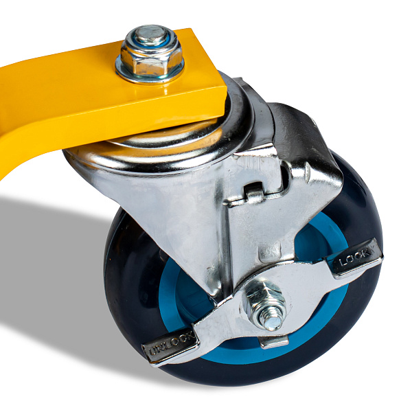 Сочетание надежной конструкции с алюминиевыми элементами и нейлоновых колес максимально облегчает перевозку тележки. Кроме того, нейлоновые колеса, обладают высокой устойчивостью к воздействию влаги и агрессивных сред. Благодаря высокой плотности и однородности материала такие колеса менее подвержены повреждениям даже при длительном воздействии статических и динамических нагрузок.