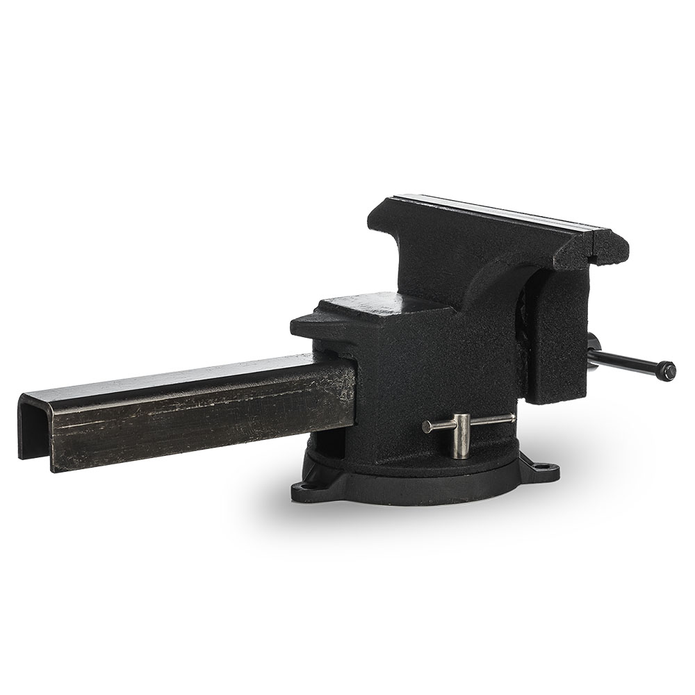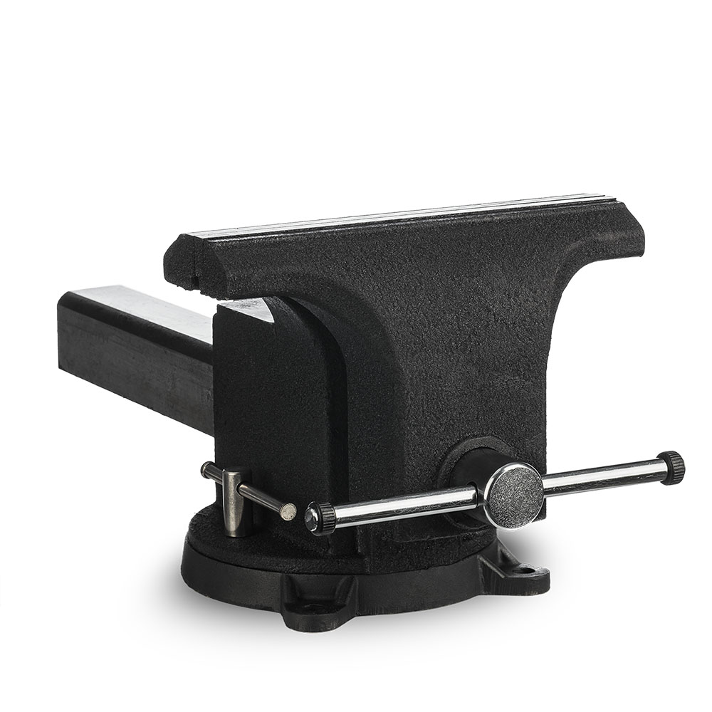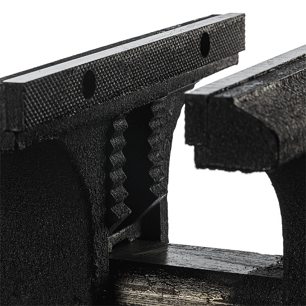 Тиски изготовлены из качественной инструментальной стали. Массивная конструкция позволяет избегать деформации инструмента. Стандартные съемные рифленые губки выполнены из закаленной стали.