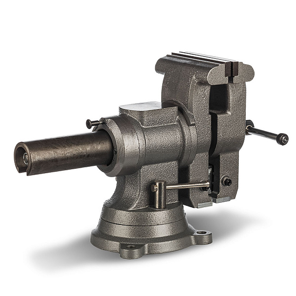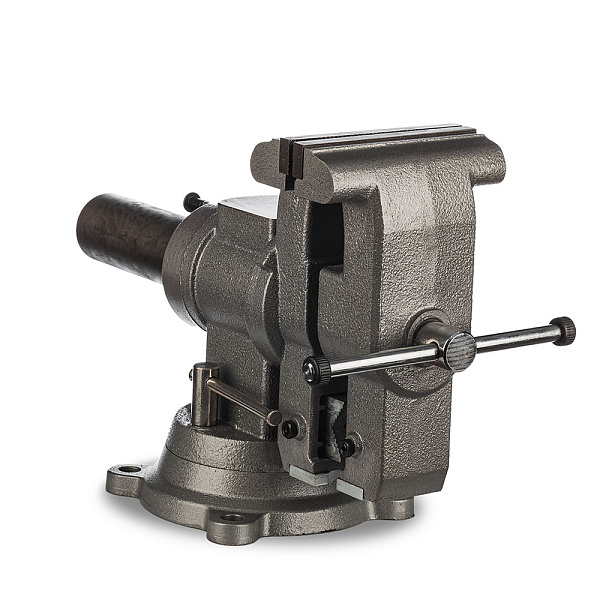 Поворотный механизм позволяет разворачивать тиски на 360°. С помощью площадки-наковальни можно быстро отрихтовать нужную деталь. Дополнительные губки дают возможность зажимать цилиндрические детали (трубы или прутки). И прямые губки, и губки для труб сменные.
