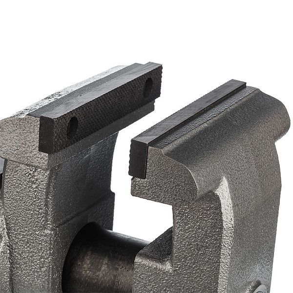 Тиски изготовлены из качественной инструментальной стали. Массивная конструкция позволяет избегать деформации инструмента. Стандартные съемные рифленые губки выполнены из закаленной стали.