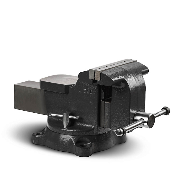 Тиски рассчитаны для работ в условиях повышенной нагрузки. Массивная конструкция позволяет избегать деформации инструмента. Поворотный механизм позволяет разворачивать тиски на 360°. С помощью площадки-наковальни можно быстро отрихтовать нужную деталь.