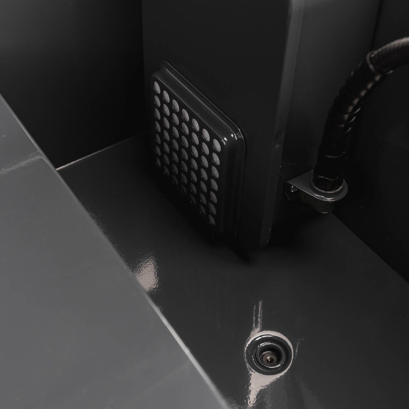 - Жидкость рециркулирует через сменный фильтрующий элемент и направляется на заготовку через гибкое нагнетательное сопло.