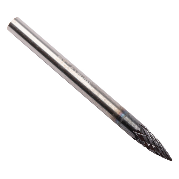 Тип насечки - DC (Double Cut). Двойная насечка с разнонаправленными зубьями. Обрабатывает такие материалы как: медь, латунь, бронза, чугун, стали твердостью 40-50 HRC, 55-60 HRC, высокоуглеродистая сталь, хромоникелевая сталь, нержавеющая сталь, сварные соединения сталей, титан.