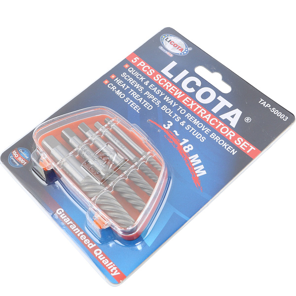 Набор экстракторов для сломанного крепежа CrMo 5/64 - 19/64" 5 пр., Licota, TAP-50003